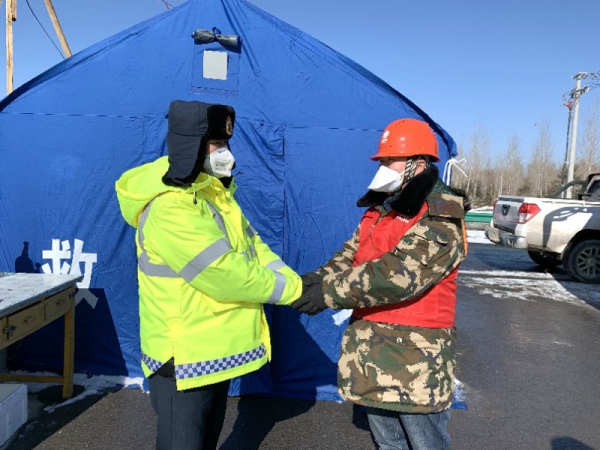2月8日上午,两辆黄色国家电网抢修车开到了检查站前,一群身着红马夹的电力工人陆续下车。检查站执勤队员赶紧上前准备履行测温、登记、检查程序时,“红马夹”说清了来意。