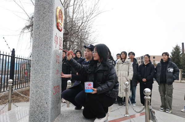 大学生们手持朱红颜料笔,在民警的指导下为第32号界碑细心描红。“每一笔都仿佛触摸到祖国的脉搏,界碑不仅是地理坐标,更是守护国土的精神象征,而移民管理警察正是这移动的界碑!”西部计划志愿者朱晓晓动情地说。