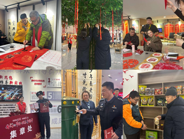 不仅如此,本次活动还让非遗走出橱窗,走进百姓生活。非遗代表性传承人将民俗元素融入福字窗花,书法家现场挥毫送福,让中华优秀传统文化在活态传承中焕发新活力;新时代文明实践中心化身群众的暖心港湾,趣味集章玩法让文化打卡成为全民乐趣,百姓在参与中加深了对传统文化的认同,邻里温情在互动中凝聚,文明新风在体验中传递。