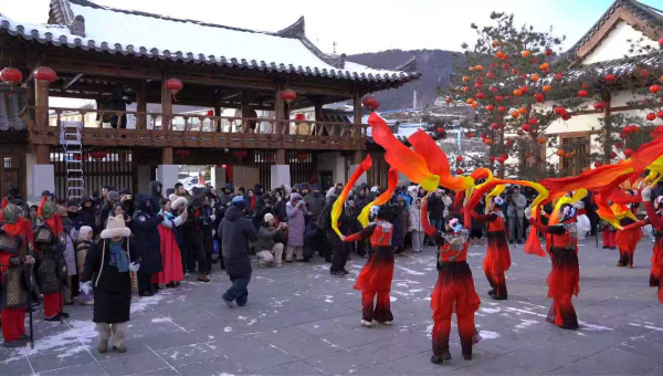 在全国4A级景区千年崖城风景区内,一场氛围感拉满、独具长白风情的“开城迎盛景 启运贺嘉年”新春开城仪式热闹启幕。身着传统服饰的“将士”肃立城门两侧,厚重城门缓缓开启,喜庆的传统秧歌红绸翻飞,活力满满的快闪舞步灵动欢快,八方宾客踏着铿锵鼓点涌入景区,在一步一景间感受历史底蕴与现代活力的鲜活碰撞,沉浸式体验独属于长白的新春文旅魅力。