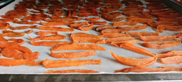“我们通常在十月采收红薯,精选后的鲜薯会在阴凉处存放一个月左右。”工作人员介绍,储存期间水分缓慢蒸发,既减少了对甜味的稀释,让甜度更突出,也让红薯质地更紧实。待水分晾至适宜程度,经过两次精细削皮、蒸熟入味后,再送入烘干箱进行干燥处理,最大程度锁住红薯的本味与营养。