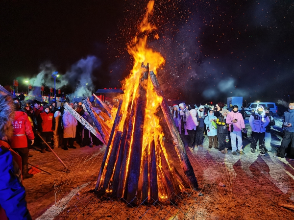 篝火互动,同心共赴新征程。夜幕降临,广场中央的篝火熊熊燃起,映红了半边天。大家手拉着手,围着篝火载歌载舞,火红的焰光照亮了一张张洋溢着幸福的笑脸,将新年的喜悦推向极致。