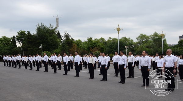 上午8时30分,在白山市委办公楼门前,市领导和部分市直部门党员干部代表精神饱满,列成整齐方阵。在庄严的国歌声中,鲜艳的国旗冉冉升起。