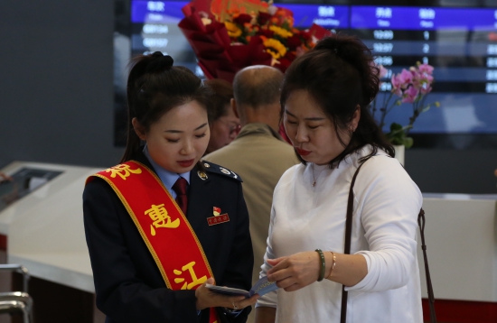 江源是“中国松花石之乡”,正式启用的江源东站也将“石韵” 特色融入细节。广场一侧,“向新而行·石韵江源”松花石文创作品展格外吸睛。古朴的砚台、精致的摆件尽显匠心,实用的镇纸、挂件、茶具等衍生品独具创意,非遗拓印体验区让传统文化在互动中传递,都成了 “打卡热点”。本地文艺团队还现场为旅客们献上了精彩纷呈的歌舞和民乐表演,引得不少人驻足观看。志愿者们则穿梭其间,提供购票指引、行李搬运等服务,忙而有序,成为一道温暖的风景线。