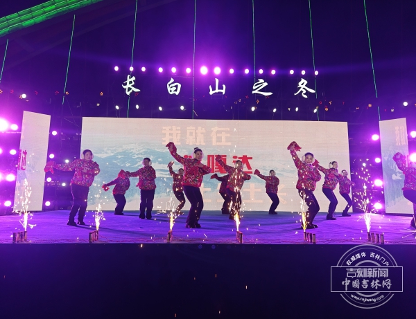 18时整,“长白山之冬”——冰雪欢歌文旅推广演出在艺术馆舞蹈队带来的开场舞蹈《大东北我的家乡》中正式启幕。舞者们身着鲜艳的服饰,以豪迈奔放的舞姿,瞬间勾勒出黑土地上的粗犷与热情,引发现场阵阵喝彩。演出汇集了众多本土优秀演艺人员与表演团体,《送你一首吉祥歌》《快来东北唠家常》《美丽白山》等一系列精彩的歌舞节目轮番登场。这些极具地域风情的表演,不仅生动展现了东北人民的豪迈热情与淳朴民风,更将白山厚重的文化底蕴和冰雪资源的独特魅力,转化为可感、可听、可看的动人艺术语言。