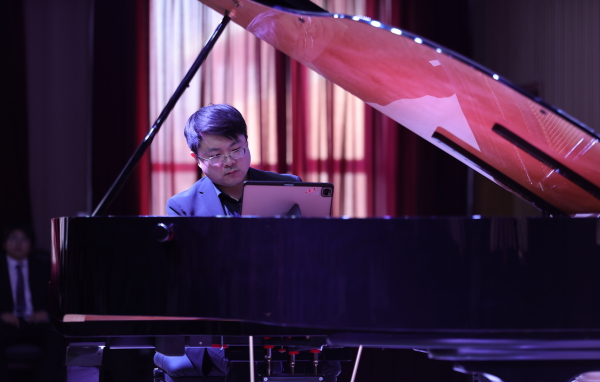 演出曲目匠心编排,上半场以《九儿幻想曲》《茉莉花随想曲》等中国原创作品为主,钢琴的音色细腻流转,勾勒出悠远东方的诗意意境;一曲《我的祖国》则以磅礴深情的旋律,唤起全场观众的情感共鸣。下半场风格多元,《平湖秋月》如水墨般清雅淡远,与贝多芬《“黎明”奏鸣曲》的蓬勃朝气交相辉映;李斯特《超技练习曲第八首“狩猎”》以精湛技艺点燃现场,将气氛推向高潮。音乐会在《黄河协奏曲第四乐章·保卫黄河》中达到顶峰,特邀钢琴家李奕辰与杨磊联袂呈现双钢琴协奏,雷霆万钧的演奏为整场演出画上震撼而圆满的句点。
